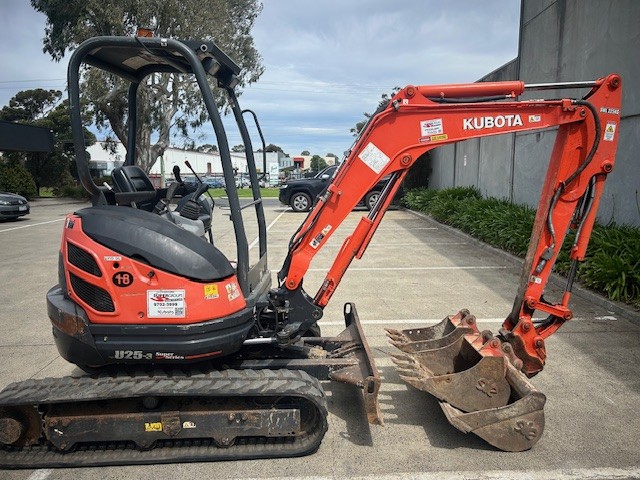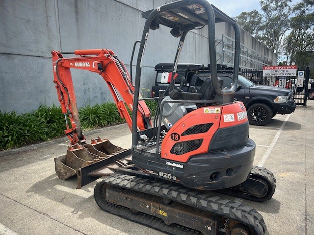 2018 Kubota U25-3, Complete with Elite Hydraulic Hitch, 300 & 450mm GP Buckets, 1200mm Mud Bucket, Full-Service History, 2655 Hours.