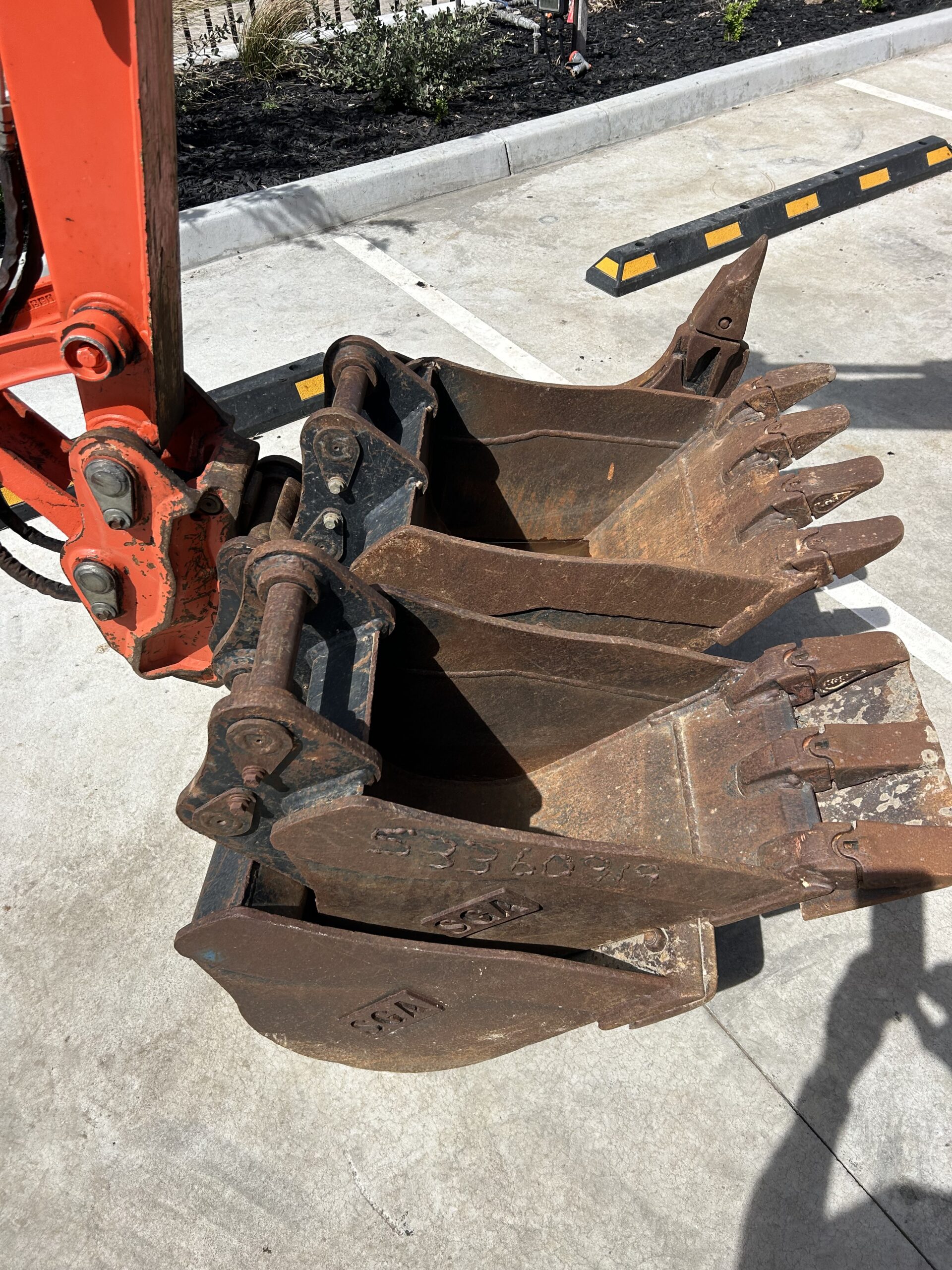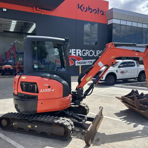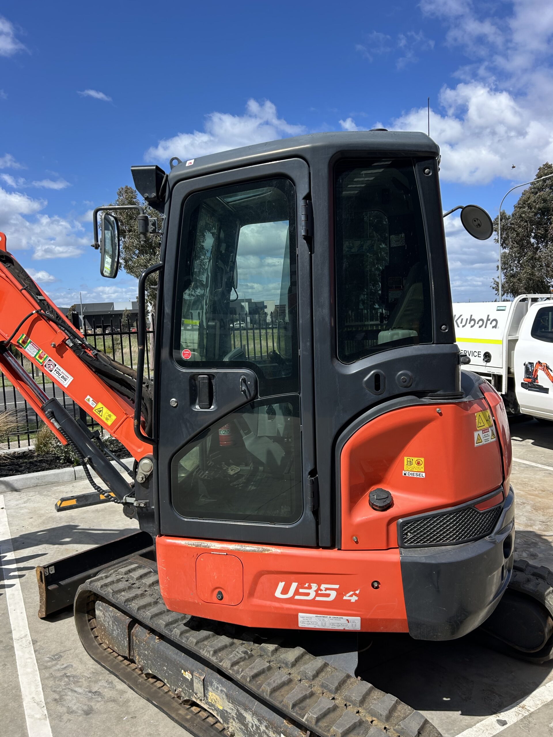2019 Kubota U35-4 Complete with Elite Hydraulic Hitch, Ripper, 300, 450 and 1200 Mud Buckets, AM/FM Bluetooth Radio, Air- Conditioned, 1278 Hours.