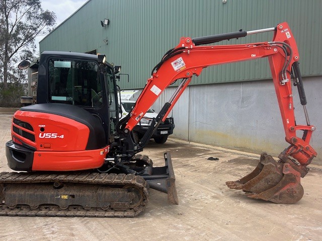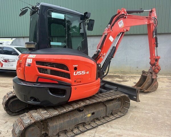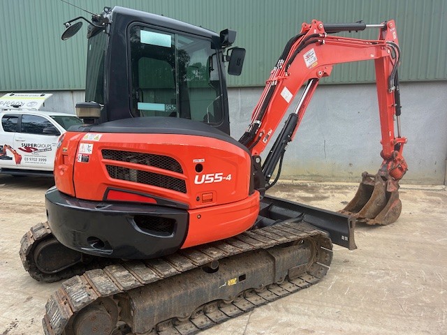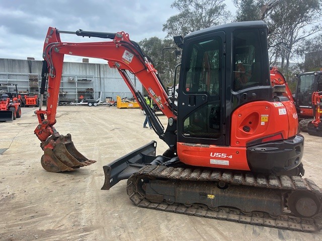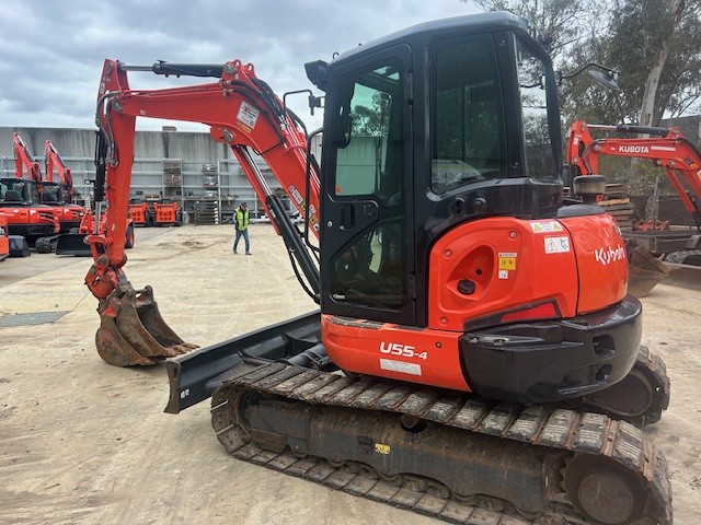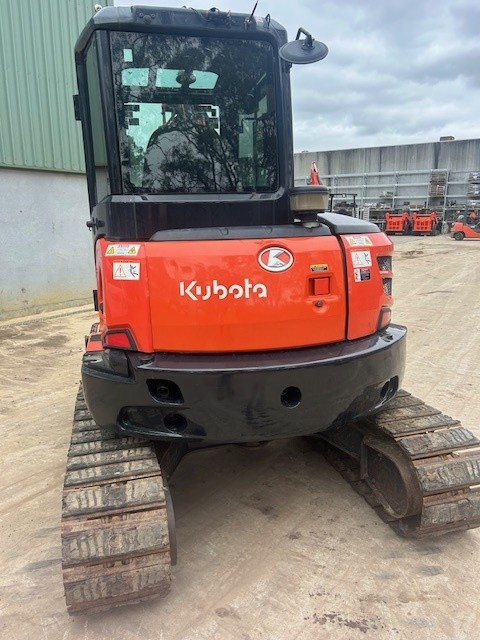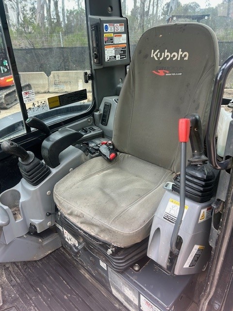 2023 Kubota U55-4 Air-Conditioned Cabin, Elite Tilting Quick Hitch, 300 & 450mm GP Buckets, Tinted Windows, Auto Idle, Blade Float, Hammer & Auger Piping, 3345 Hours, Seat Cover, AM/FM Radio, Steel Tracks with Bolt on Pads.